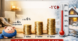Die Mehrkosten für das Heizen einer Wohnung geht durch die Decke, CO2 Steuer und andere Steuern erhöhen die Kosten drastisch! In dieser Übersicht siehst du, wie die Heizkosten pro Woche bei sinkender Außentemperatur, im Verhältnis zu einer durchschnittlichen Referenz-Außentemperatur von +5 °C, steigen. Einfamilienhaus (130 Quadratmeter) Familienwohnung (100 Quadratmeter) Single-Wohnung (45 Quadratmeter) Quelle BILD